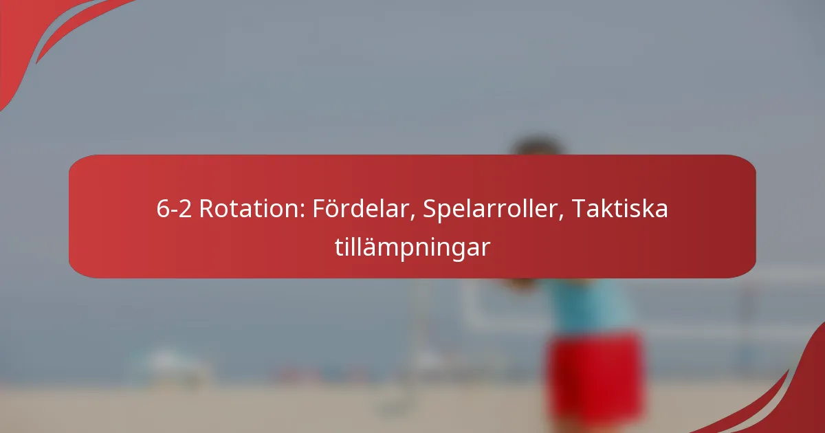 6-2-rotation i volleyboll är ett strategiskt system som använder sex spelare, med två uppspelare och fyra anfallare, för att förbättra både offensiv effektivitet och defensiv anpassningsförmåga. Denna formation gör det möjligt för lag att optimera spelarrollerna, säkerställa en stark närvaro vid nätet samtidigt som effektiv bollfördelning och täckning av planen underlättas. Genom att utnyttja de unika styrkorna hos varje position skapar 6-2-rotationen mångsidiga poängmöjligheter och strategiska defensiva uppställningar.