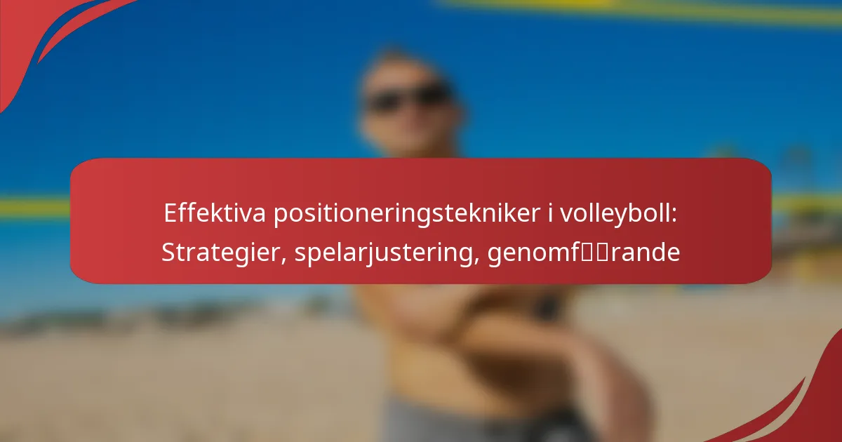 Effektiva positioneringstekniker i volleyboll är avgörande för att förbättra lagets prestation och uppnå framgång på planen. Genom att strategiskt placera spelare baserat på deras roller och formationer kan lag optimera sina offensiva och defensiva förmågor. Att förstå dessa tekniker gör att spelare kan förutse spel och utföra rörelser med precision, vilket säkerställer omfattande täckning och samordning under matcher.
