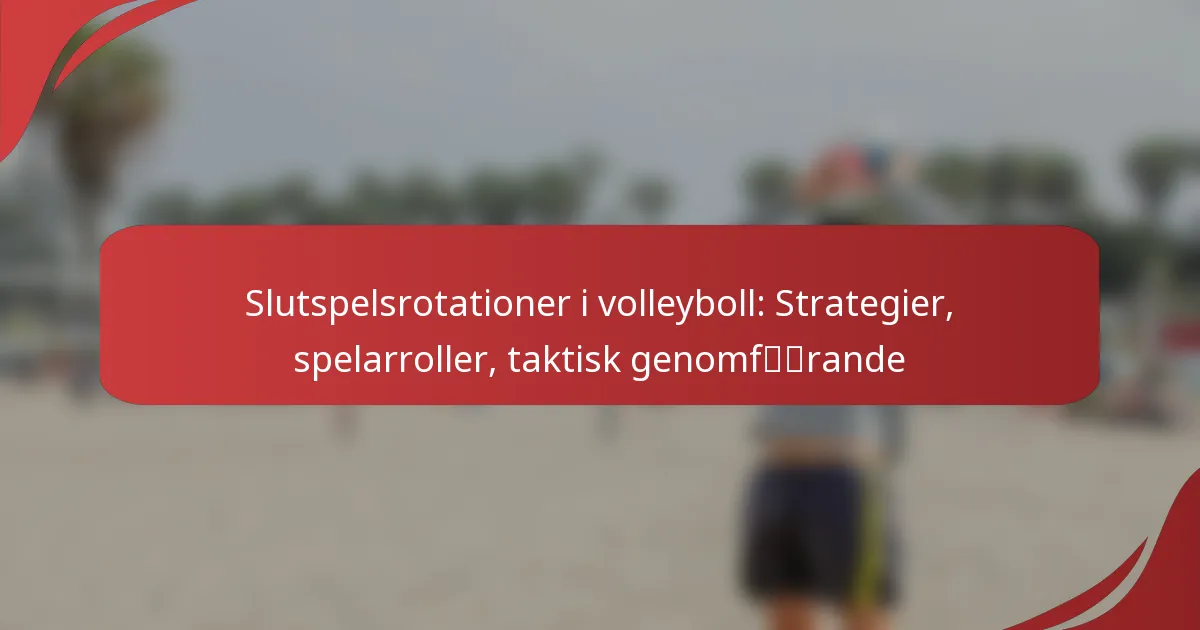 Slutspelsrotationer i volleyboll är avgörande för att optimera lagets prestation under de avgörande sista momenten av en match. Genom att strategiskt placera spelare och tydligt definiera deras roller kan lagen utnyttja sina styrkor och motverka svagheter, vilket har en betydande inverkan på matchens utgång. Effektiv genomföring av dessa rotationer kräver sömlös kommunikation och anpassningsförmåga till motståndarens taktik.