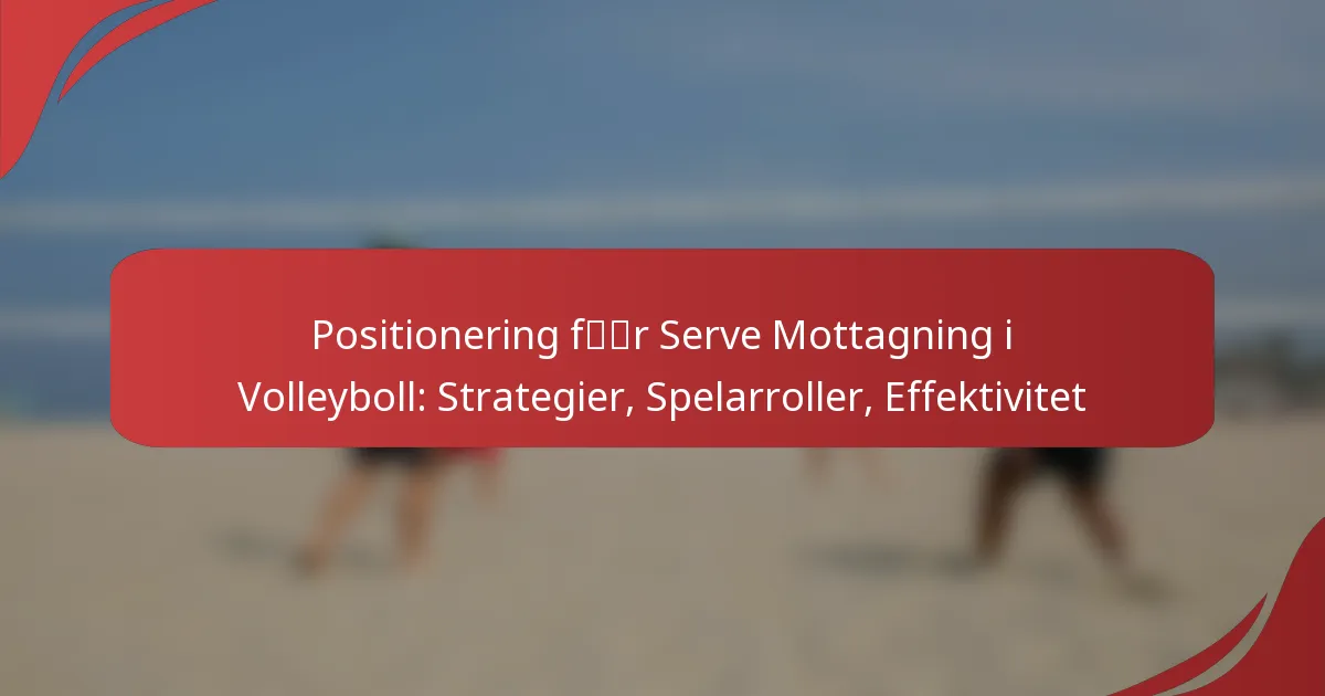 Effektiv positionering vid mottagning av serve i volleyboll är avgörande för ett lags framgång, eftersom det involverar strategiska svar på olika servetyper och spelares styrkor. Varje spelare antar specifika roller som förbättrar mottagningen och underlättar en smidig övergång till anfall, medan tydlig kommunikation är avgörande för att maximera effektiviteten. Genom att analysera prestationsmått och matchstatistik kan lag utvärdera sina strategier för mottagning av serve och förbättra den övergripande prestationen.