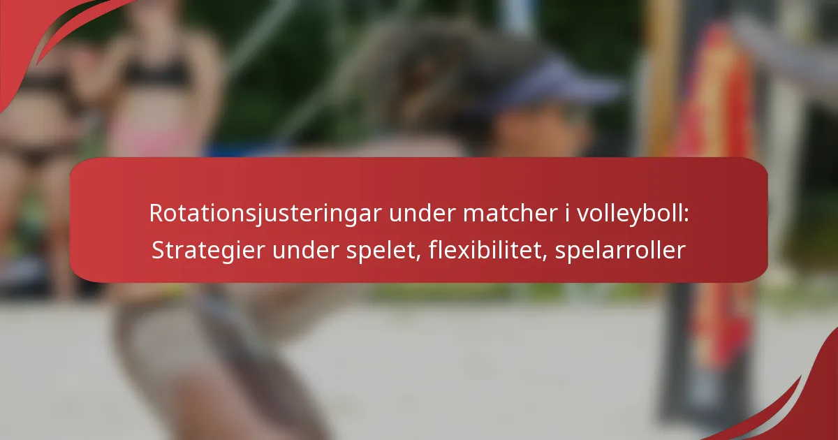 Rotationsjusteringar i volleyboll är avgörande för att förbättra lagets prestation genom att strategiskt ändra spelarnas positioner under en match. Dessa justeringar gör det möjligt för lagen att anpassa sig till motståndarnas styrkor och svagheter, vilket säkerställer optimal täckning av planen och scoringmöjligheter. Effektiv kommunikation och flexibilitet i spelarnas roller spelar en avgörande roll för att framgångsrikt implementera dessa strategier under spelet.