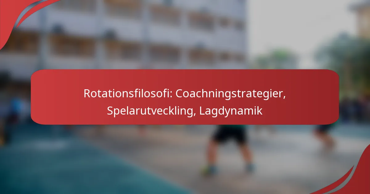Rotationsfilosofi är en träningsstrategi som fokuserar på den kontinuerliga rörelsen av spelare inom olika positioner under spelet. Denna metod syftar till att utveckla spelarnas mångsidighet och beslutsfattande förmåga, vilket gör att de kan anpassa sig till olika spelscenarier. Kärnprinciper inkluderar spelarmakt, situationsmedvetenhet och samarbetsinriktat lagarbete.