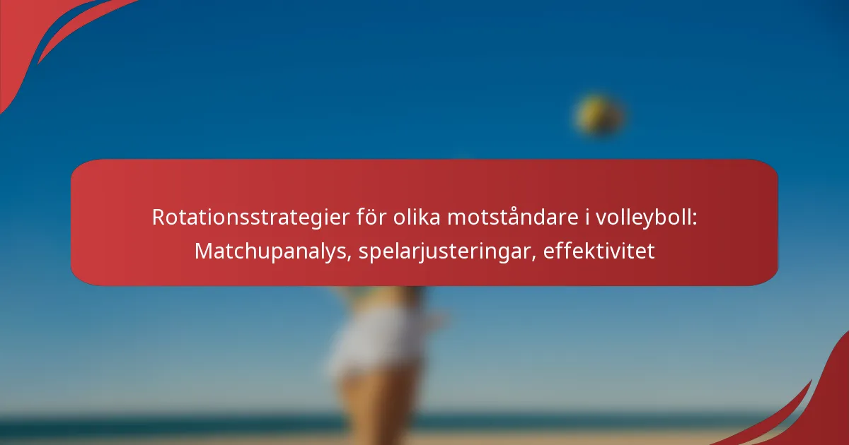 Nyckelrotationsstrategier i volleyboll involverar systematiska spelarrörelser som förbättrar lagets prestation mot olika motståndare. Dessa strategier syftar till att optimera spelarnas positionering, kapitalisera på styrkor och utnyttja motståndarnas svagheter under matcherna.